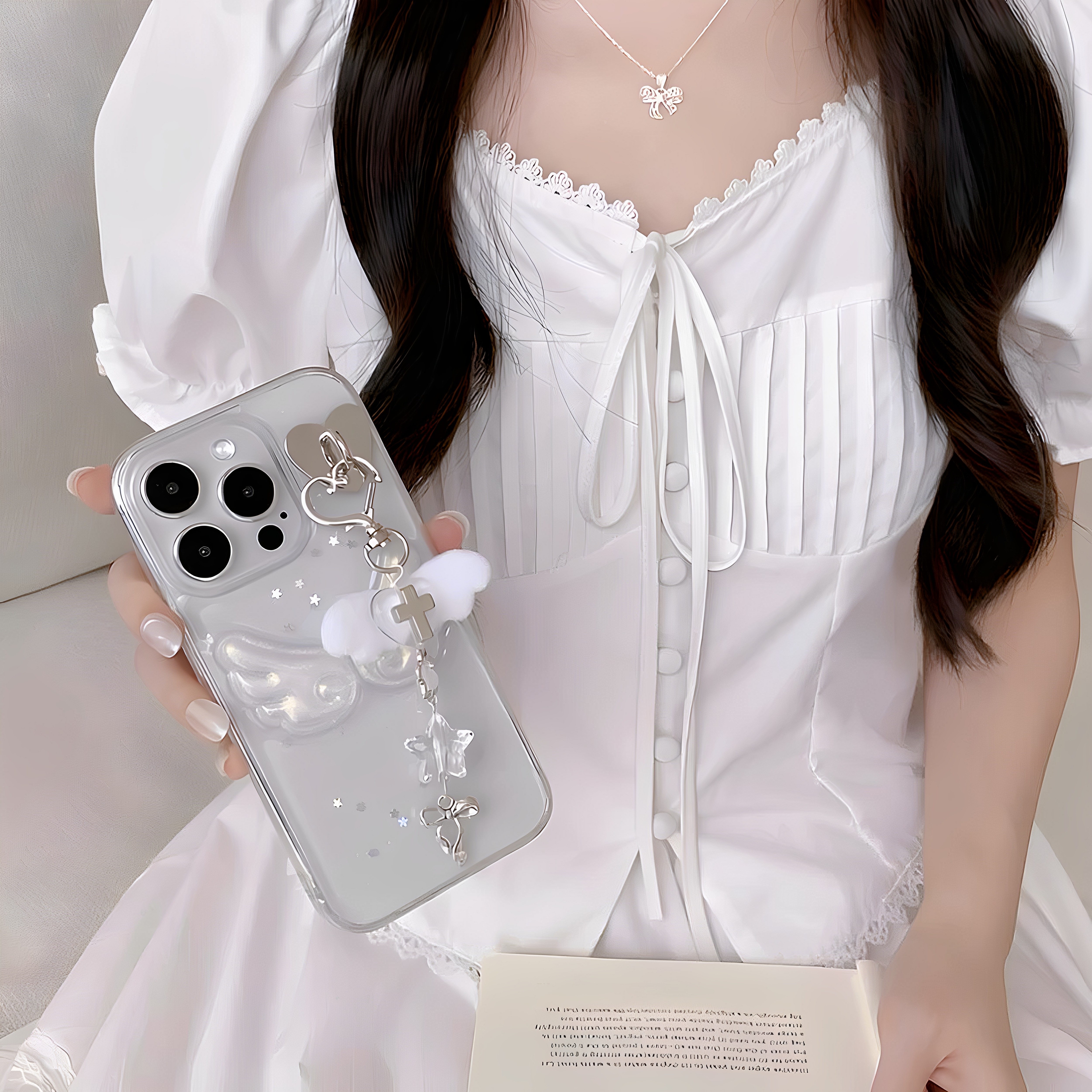 ins风立体天使翅膀手机壳适用于苹果17 16promax 15滴胶亮片iPhone14 13挂链12 xr xsmax保护套se2 6 7 8plus