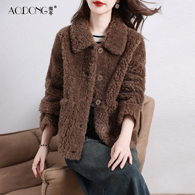 - 羊剪绒皮草外套 女