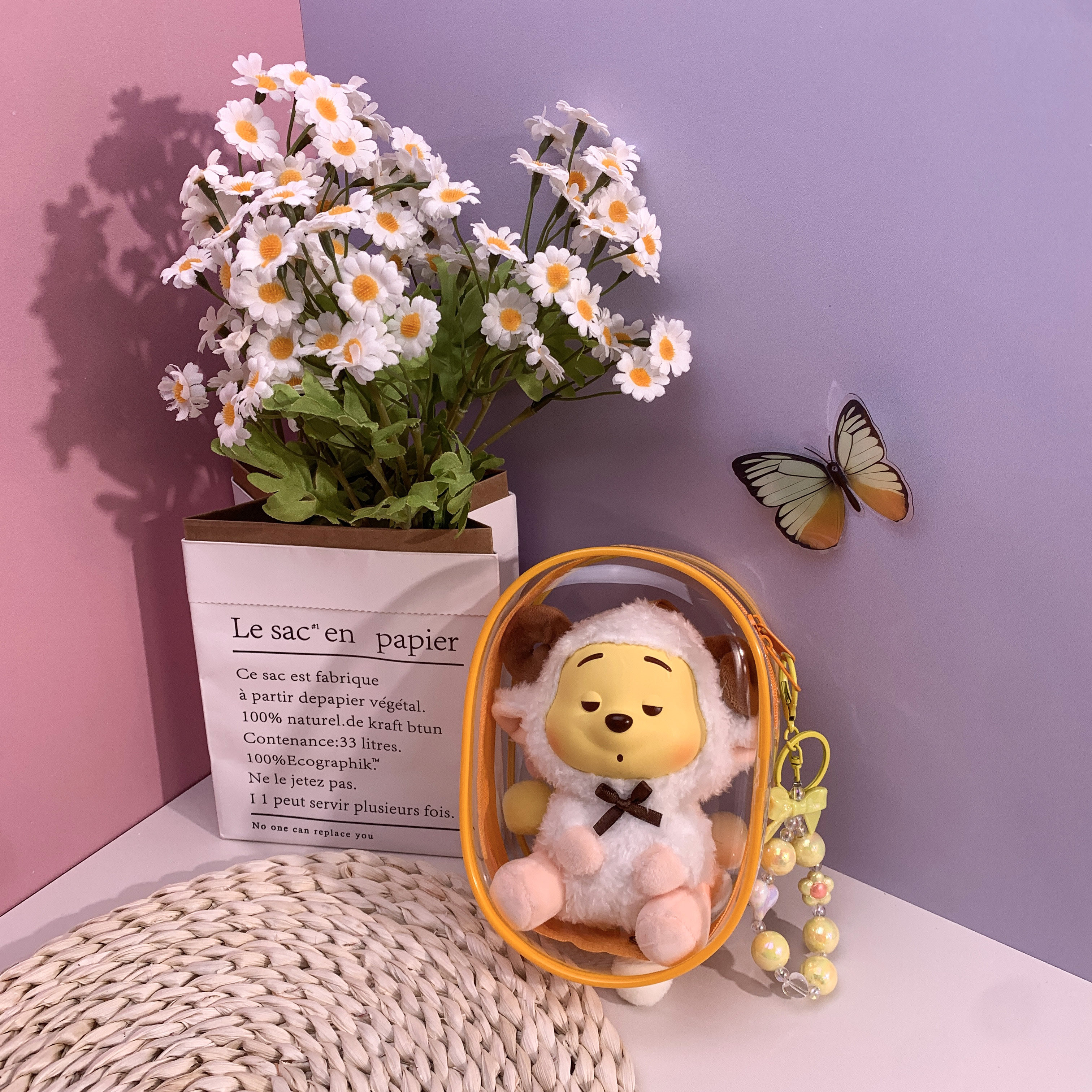 名创优品小熊维尼系列顽皮派对跳跳虎透明娃包搪胶毛绒娃娃收纳包
