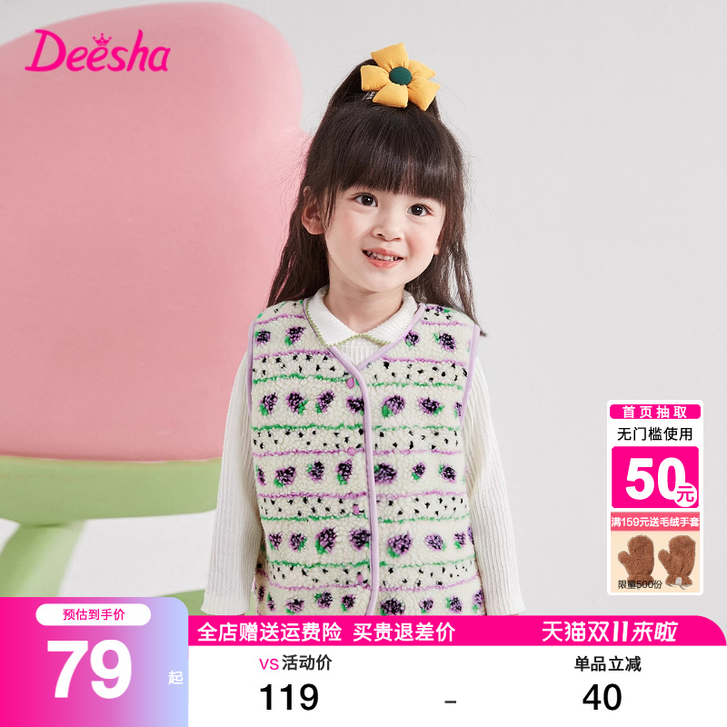 笛莎旗舰店童装女童马甲冬装新款女宝宝小童女孩儿童加绒背心上衣