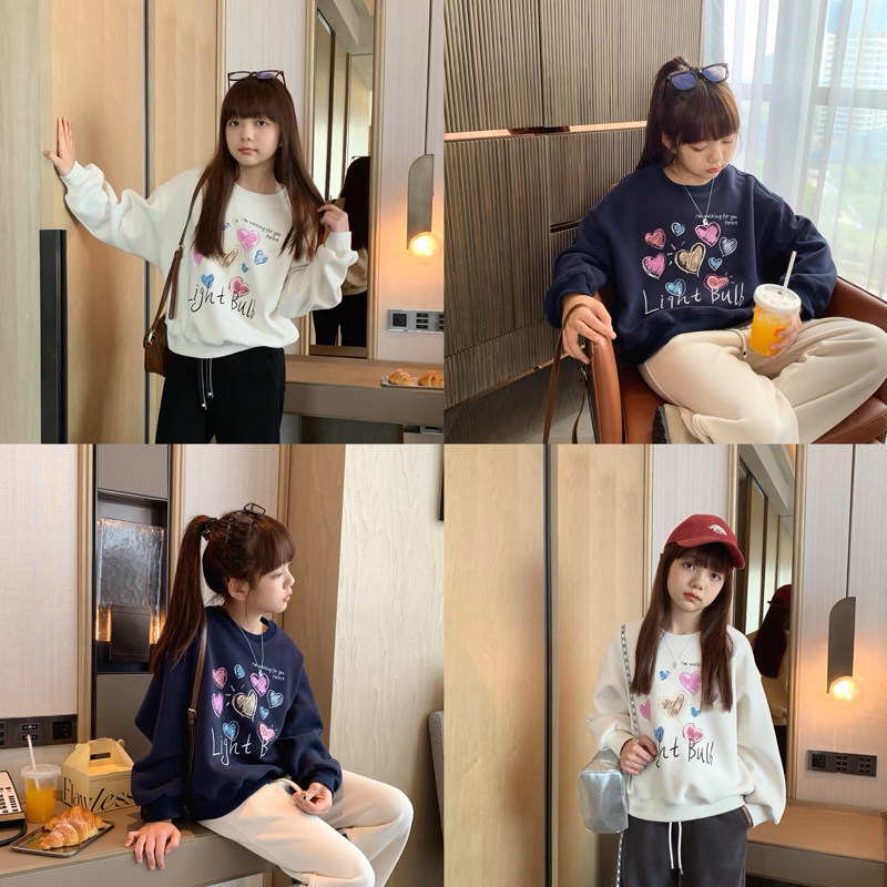 女大童韩版爱心加绒卫衣2024冬装新款青少年保暖套头绒衫学生上衣