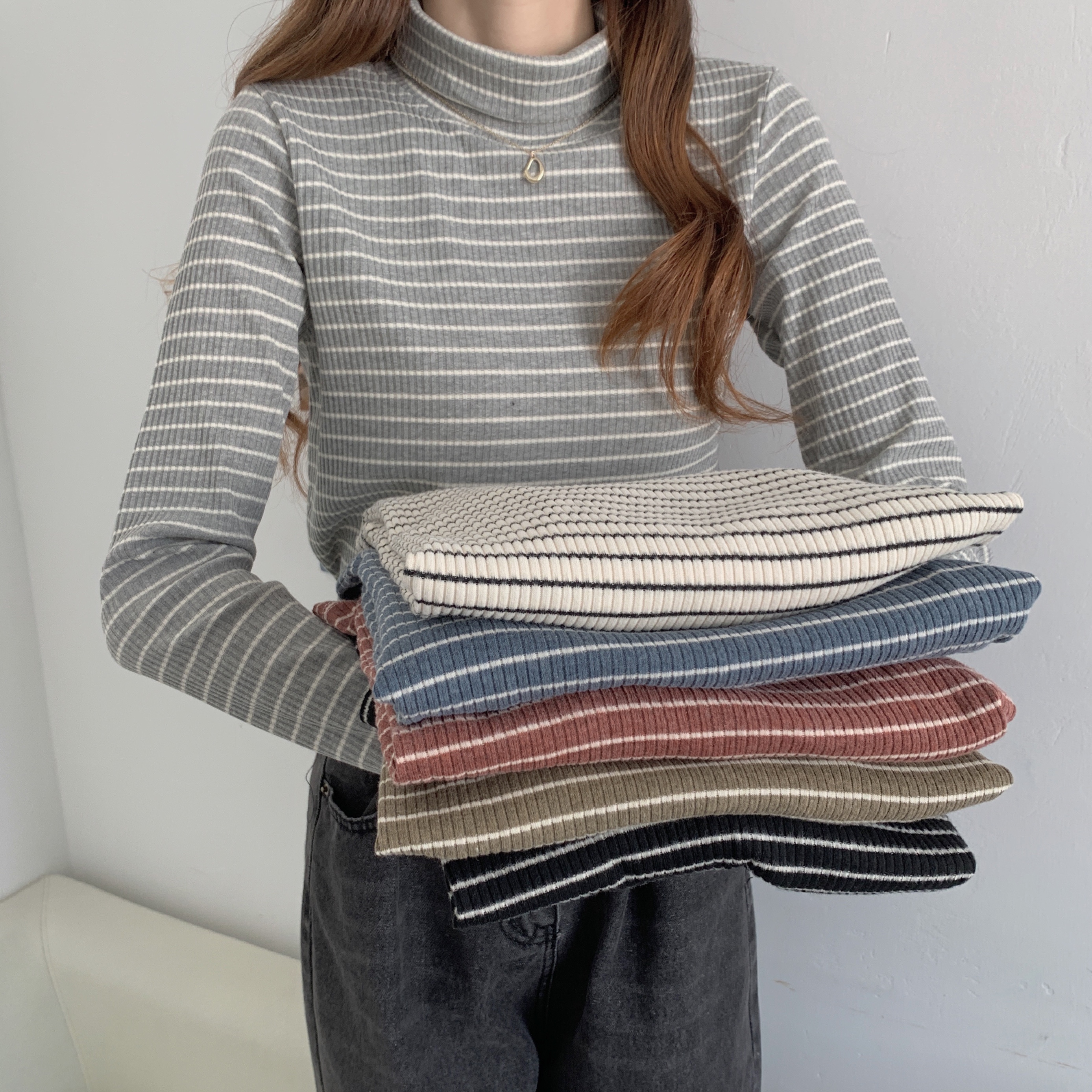 半高领内搭毛衣女秋冬新款百搭修身长袖针织衫洋气条纹t恤打底衫