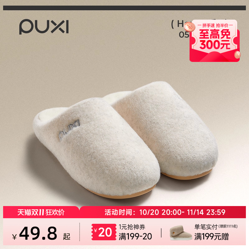 朴西苔痕加绒棉拖鞋女士秋冬家用防滑保暖居家室内卧室抗菌棉拖男