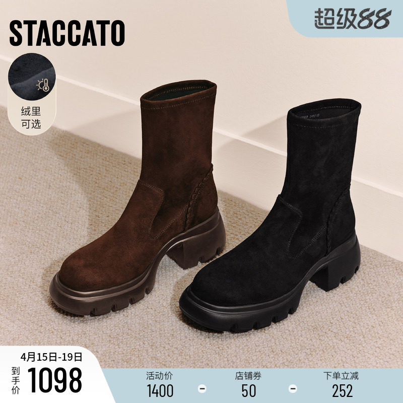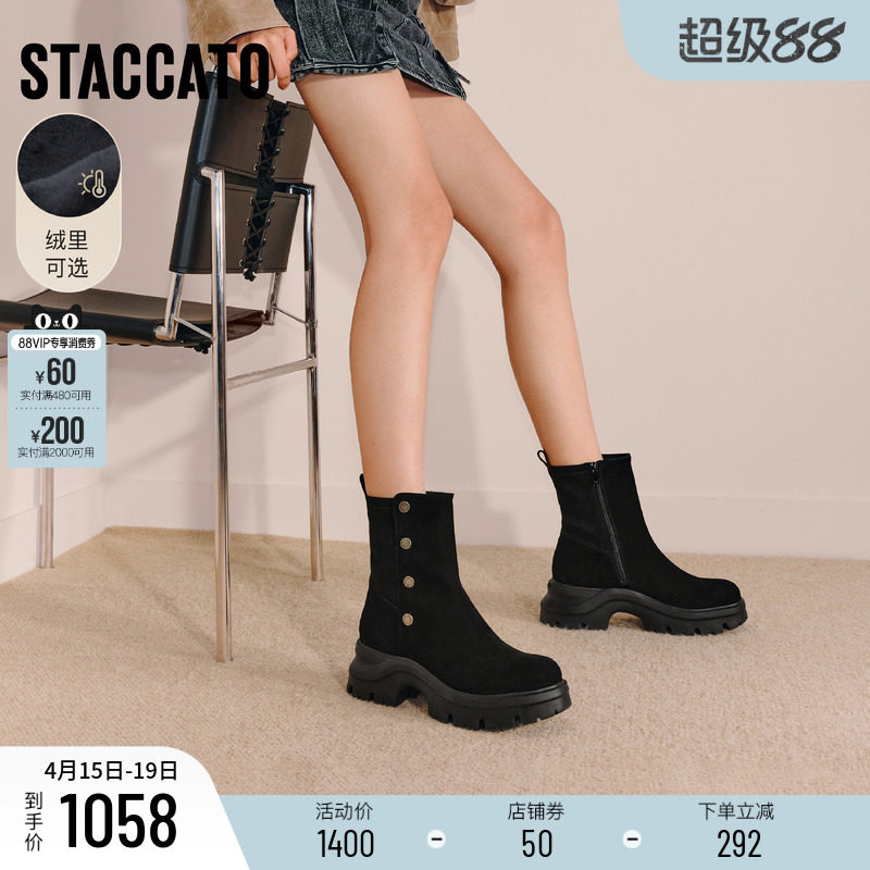 - 粗跟短靴女高跟单靴