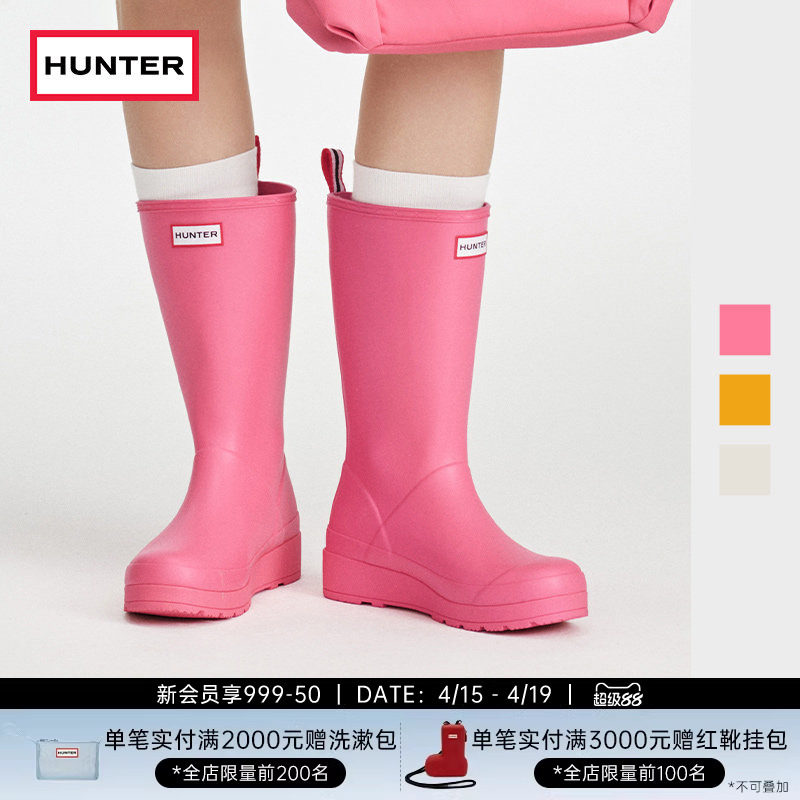 HUNTER酷玩女靴防水防滑中筒靴户外露营溯溪雨鞋哑光厚底增高女鞋