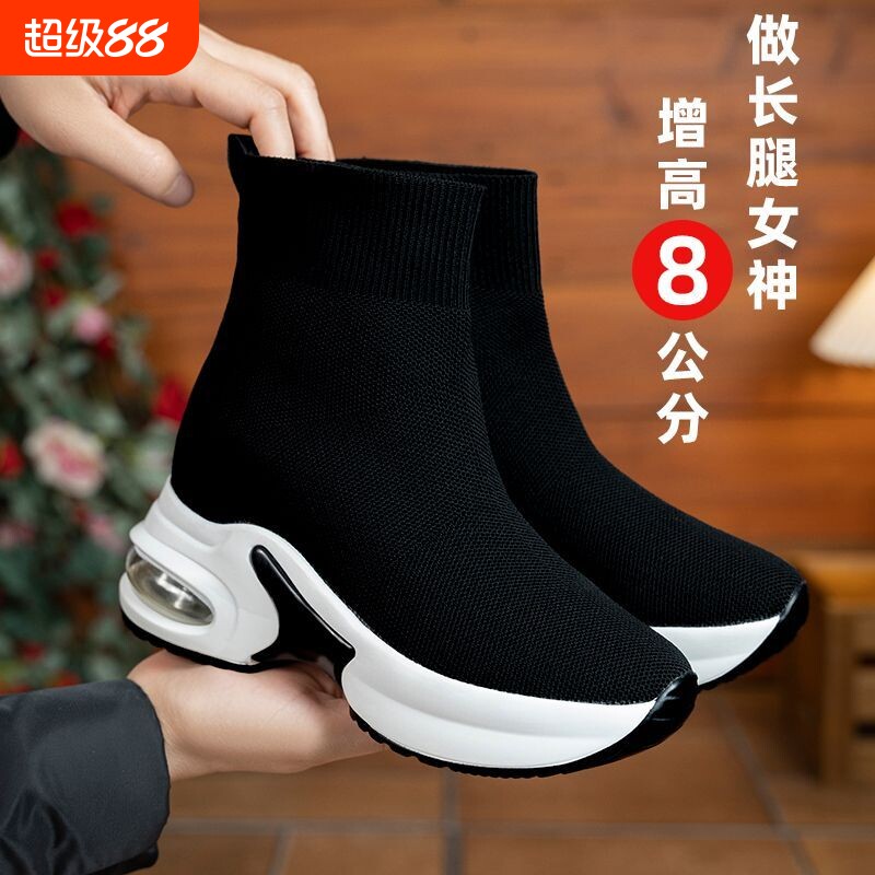 超高跟14cm小白鞋厚底12cm内增高女靴小个子松糕鞋百搭休闲运动鞋
