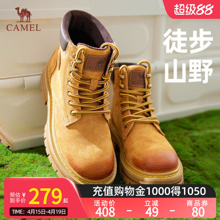 Camel骆驼马丁靴官方户外大黄靴女真皮女靴秋冬加绒厚底增高女鞋