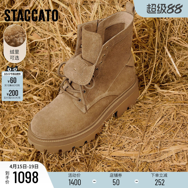 思加图新款音符靴工装靴厚底增高棕色短靴加绒时装靴女靴EFU49DD5