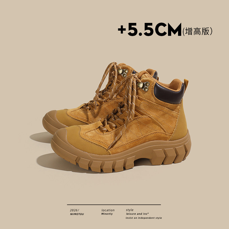 厚底增高马丁靴女英伦风大黄靴2026年春夏新款粗跟短靴加绒女靴