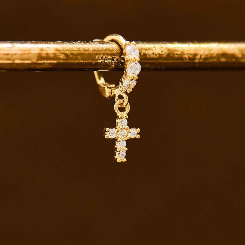 韩国时尚10K黄金耳环女 高级感小清新镶钻十字架通勤彩金耳扣单只