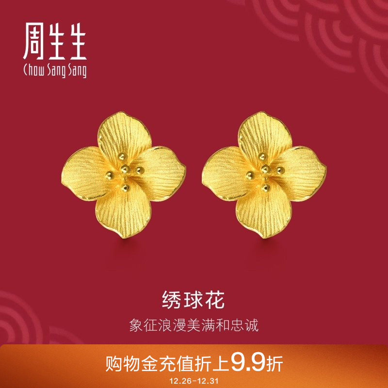 周生生足金生生有囍立体绣球花黄金耳环女黄金耳钉86594E计价