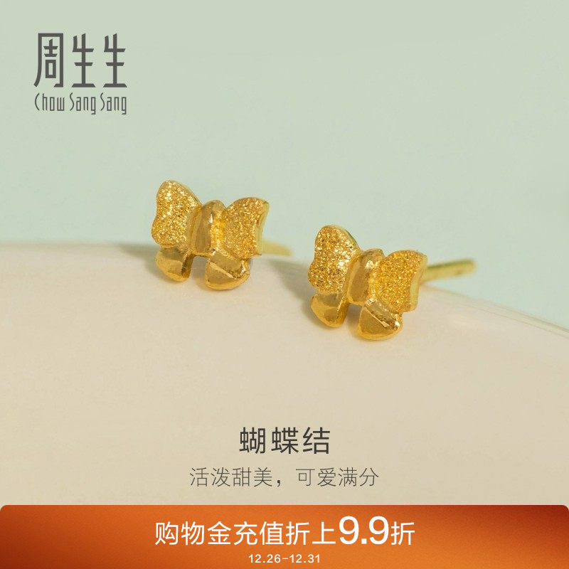 圣诞礼物周生生在逃公主蝴蝶结耳钉黄金耳环足金耳饰珠宝68739E