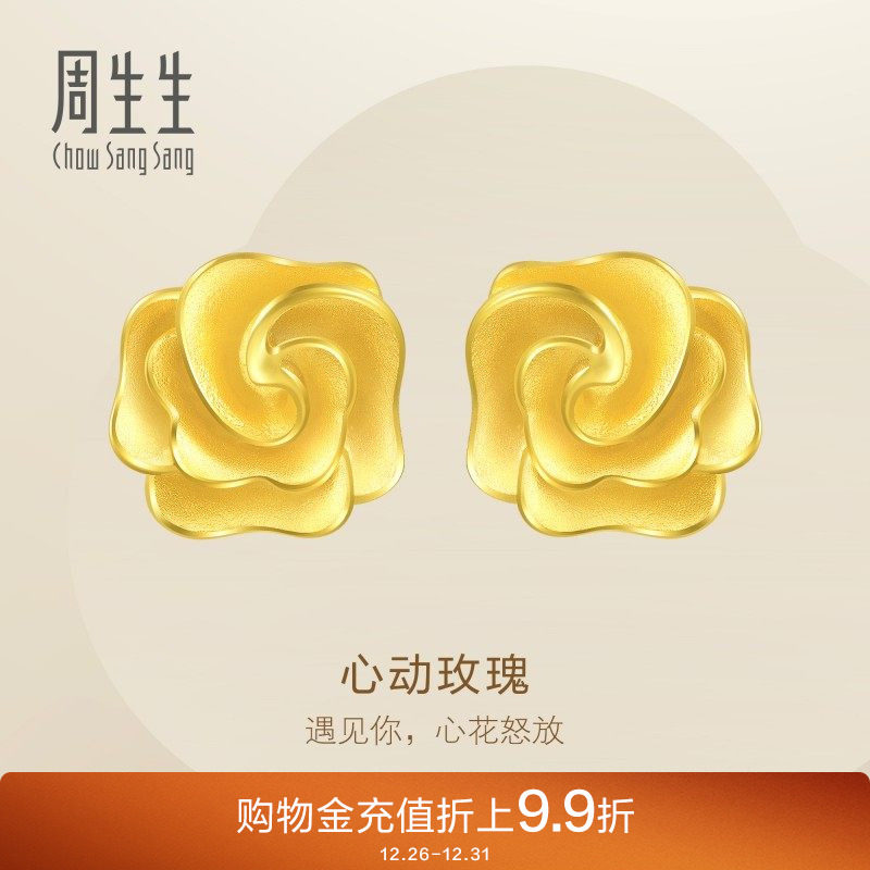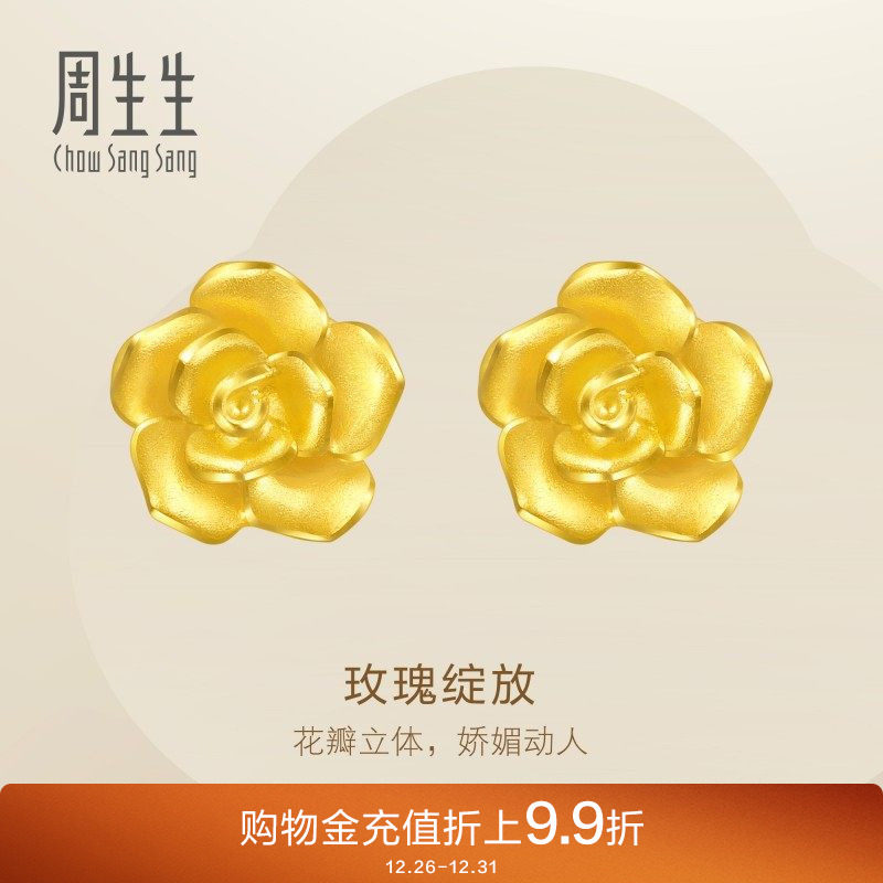 圣诞礼物周生生黄金耳环玫瑰花耳钉足金耳饰女款珠宝68730E定价