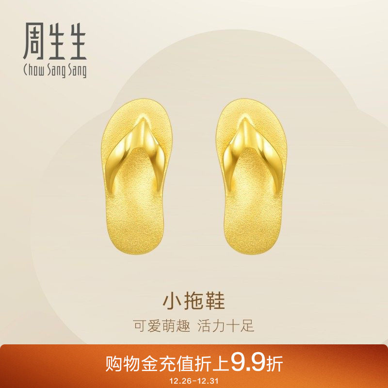 圣诞礼物周生生珠宝金饰小拖鞋黄金耳钉女黄金耳环足金耳饰68707E