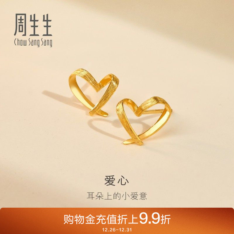 圣诞礼物周生生黄金耳钉黄金耳环足金心形耳饰女68738E定价