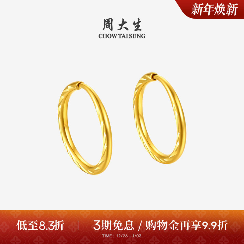 周大生黄金耳环女计价足金车花光面素圈圆圈耳饰生日礼物送女朋友