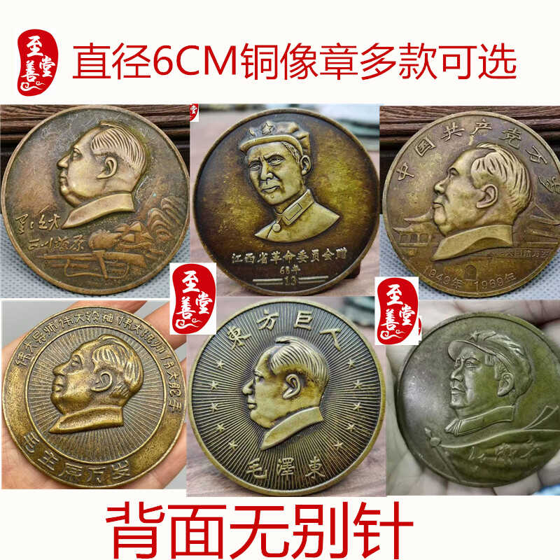 红色收藏复古黄铜毛主席像章纪念章背面无别针直径6CM多款集合