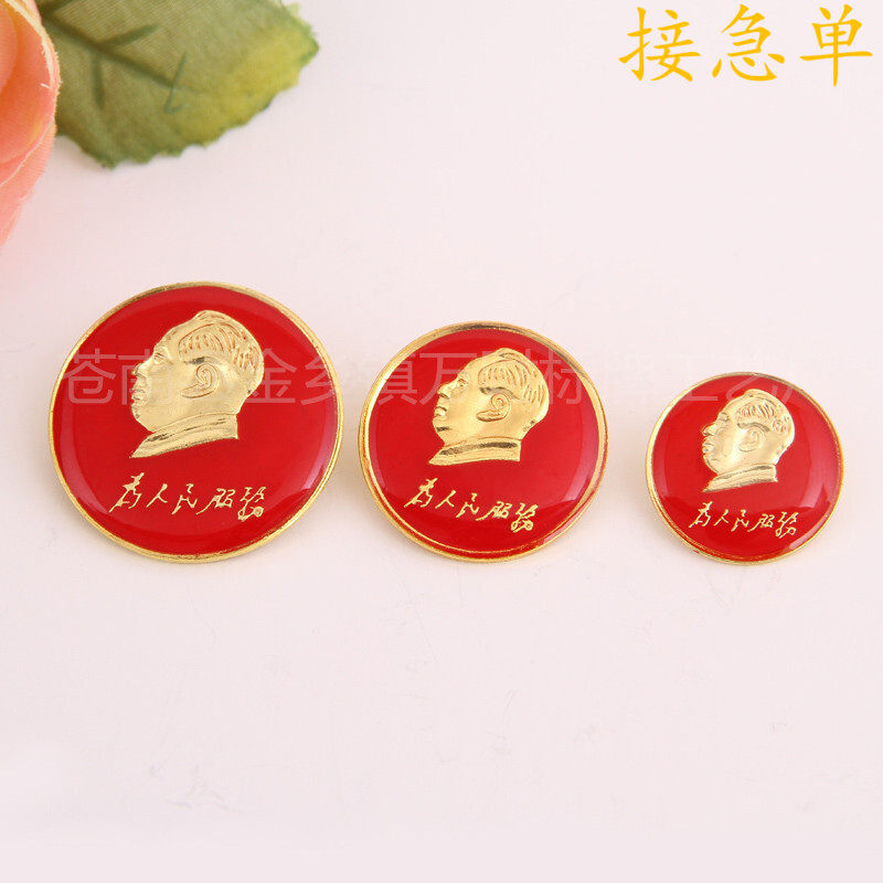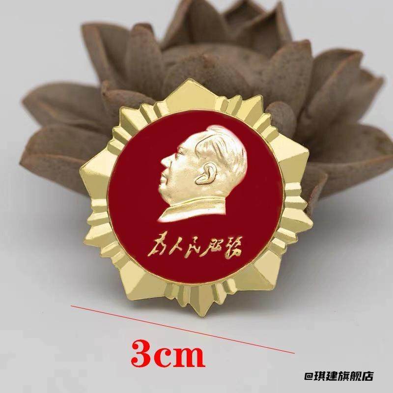 毛主席胸章徽章红色圆形胸针像章为人民服务纪念章金属徽章毛爷爷