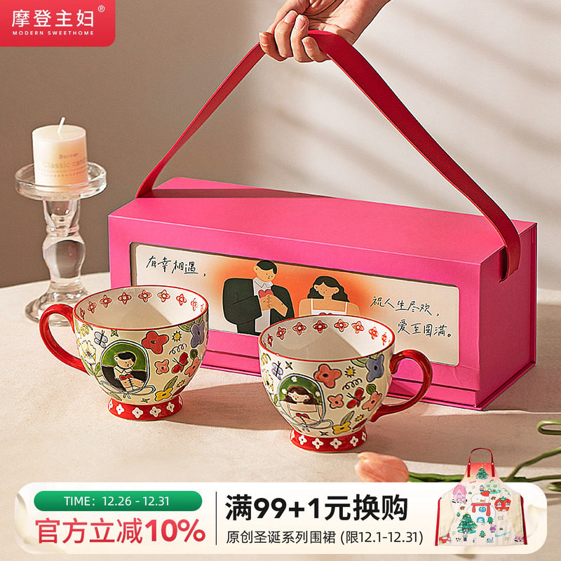 摩登主妇情侣对杯订婚结婚新婚礼物杯子新年礼物送闺蜜水杯马克杯