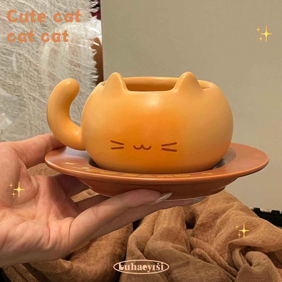 可爱焦糖面包猫咪陶瓷马克杯咖啡杯碟高颜值生日礼物女生ins水杯
