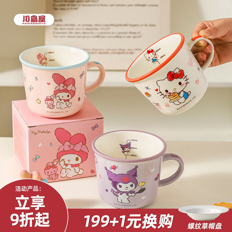 川岛屋三丽鸥马克杯儿童杯子家用喝水杯刻度牛奶杯3岁以上敞口杯