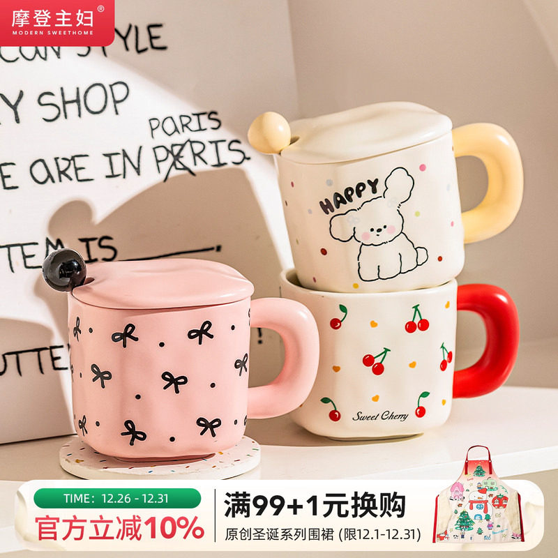摩登主妇马克杯带盖勺陶瓷杯早餐杯办公室家用水杯冲泡杯咖啡杯子
