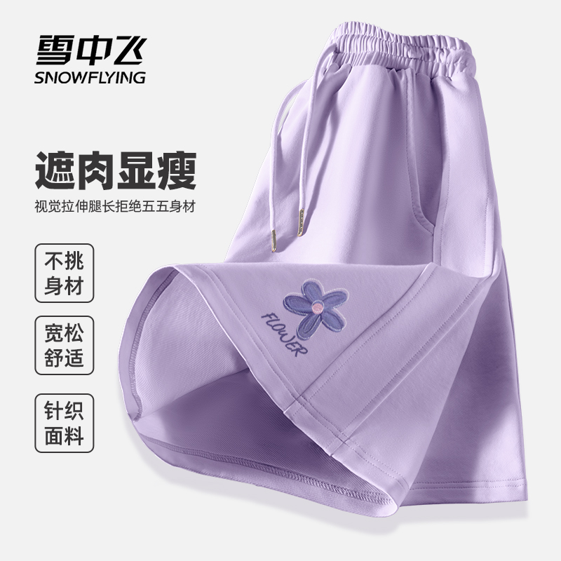 雪中飞运动短裤女外穿夏季2025新款中裤女生针织休闲紫色五分裤PC