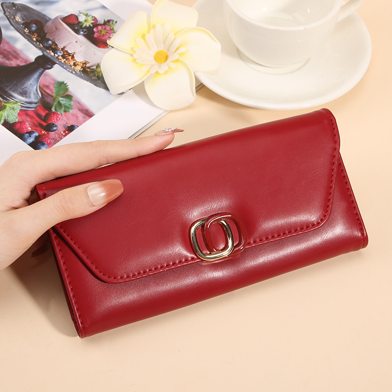 小众新款简约纯色中长款女士钱包大容量多功能拉链搭扣卡包零钱包