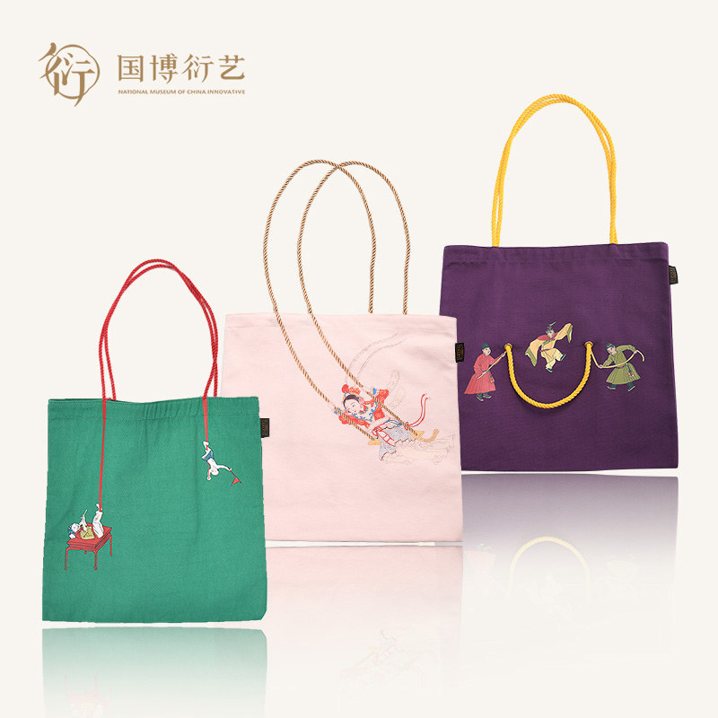 中国国家博物馆创意撞色单肩帆布包女包国风学生文创女友生日礼物