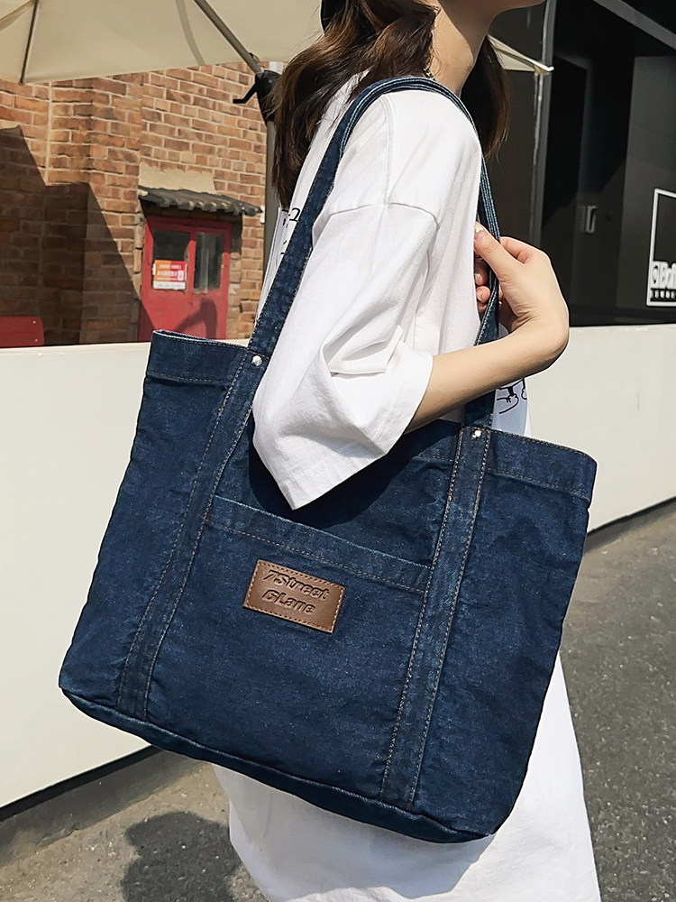 网红原创欧美韩版文艺休闲牛仔袋逛街百搭手提大容量单肩帆布包女
