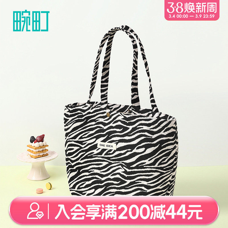 畹町斑马纹系列单肩帆布包女大容量学生上课包小众设计手提托特包
