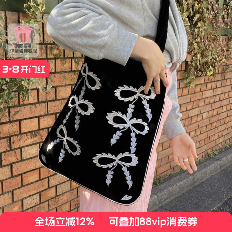 casselini小众设计日常通勤丝绒蝴蝶结手提单肩帆布包女大容量