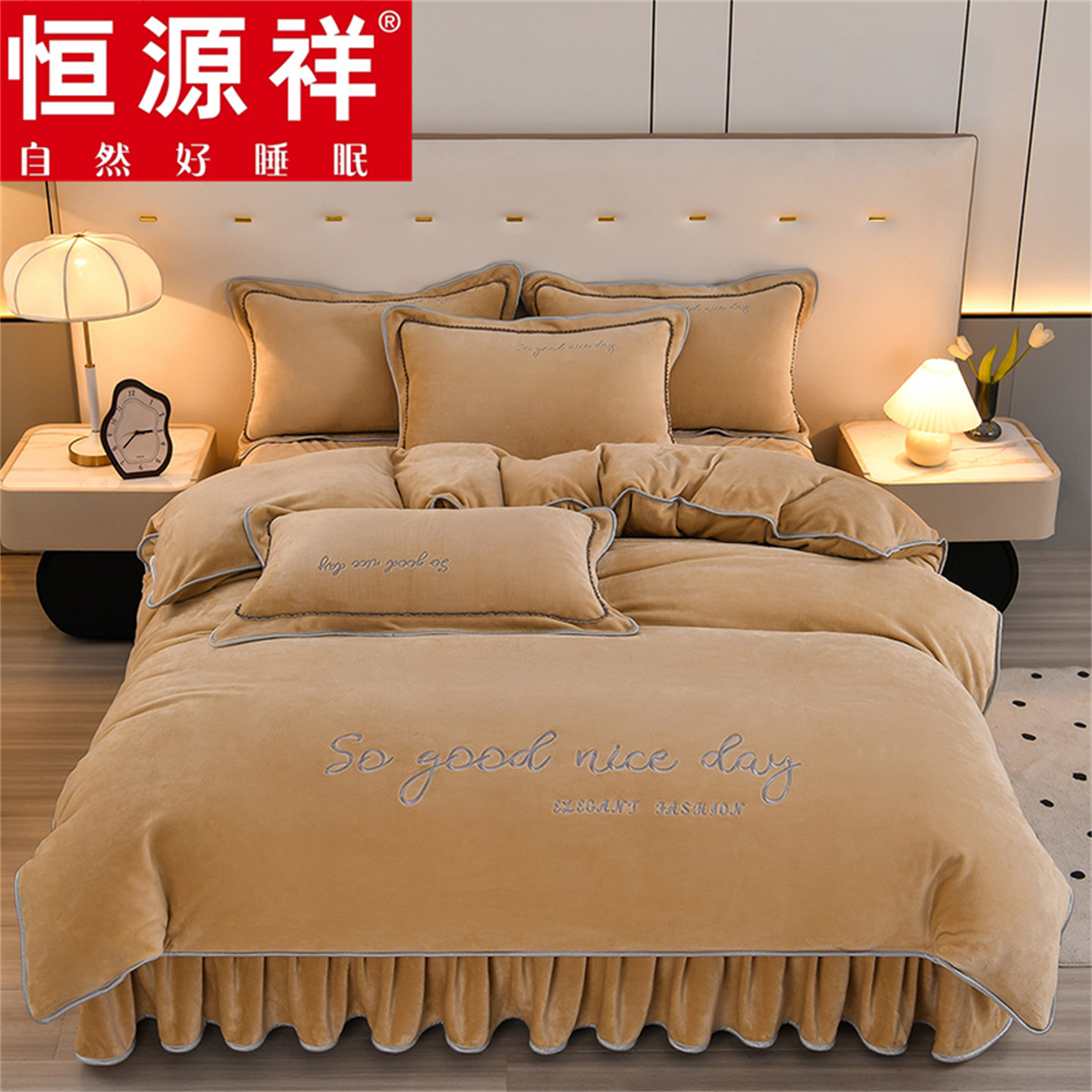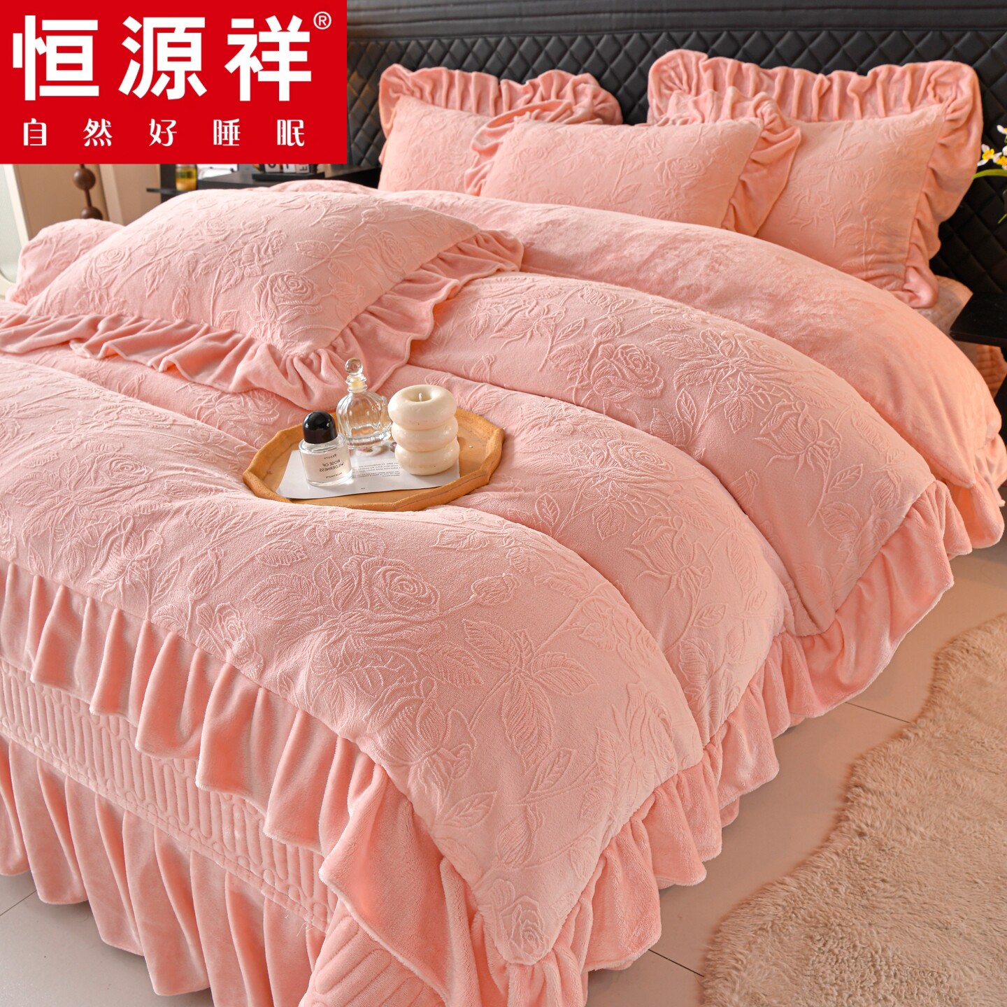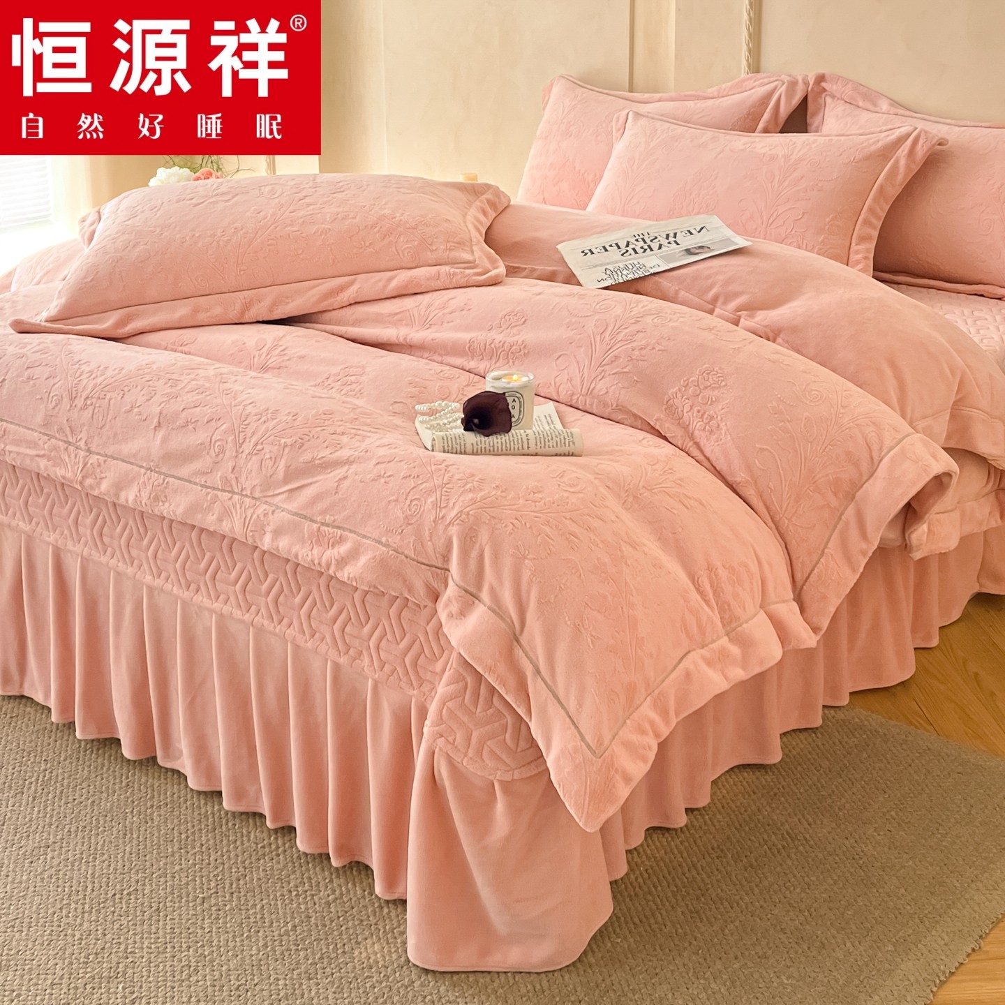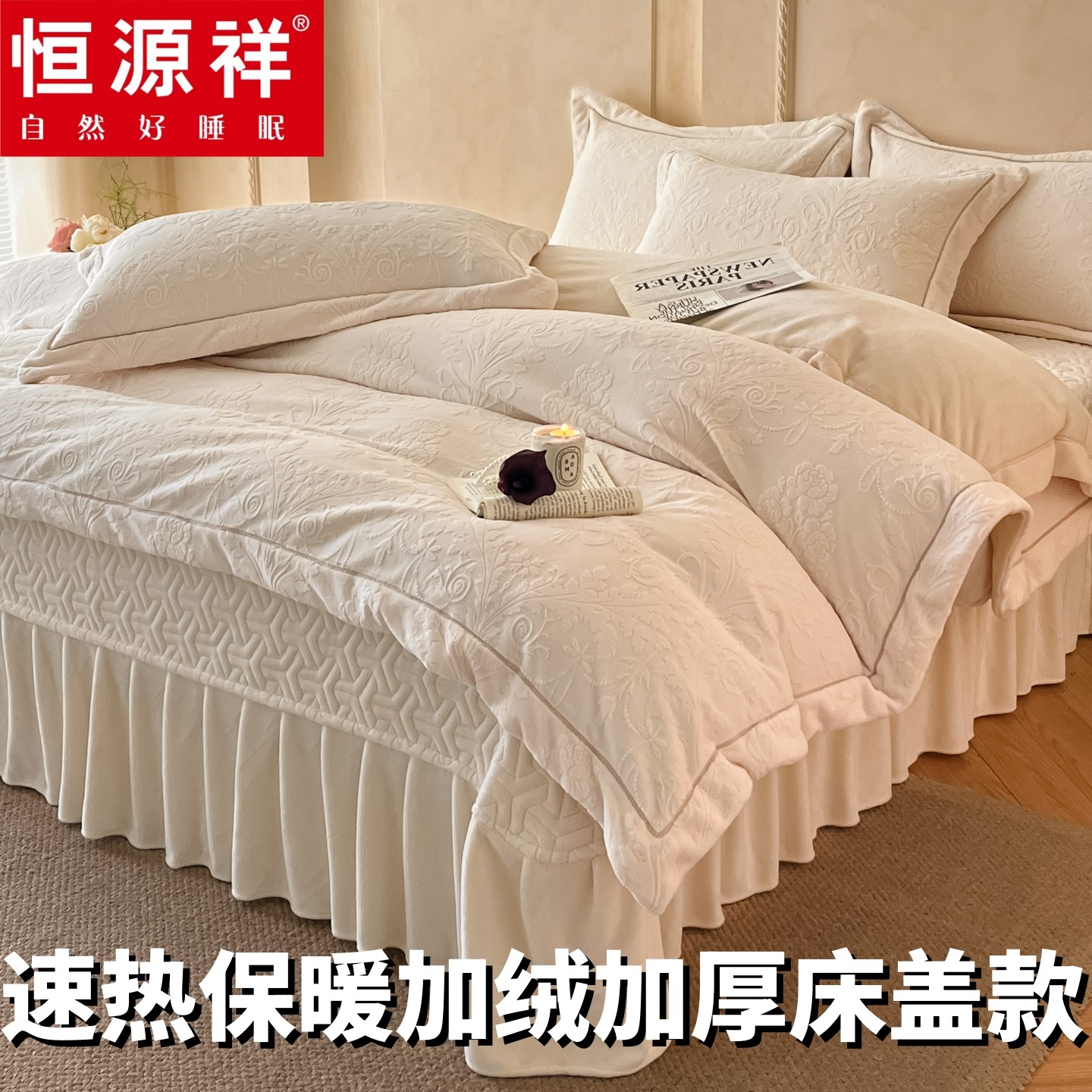 恒源祥牛奶绒四件套床盖款加绒加厚保暖被套床裙款珊瑚绒秋冬新款
