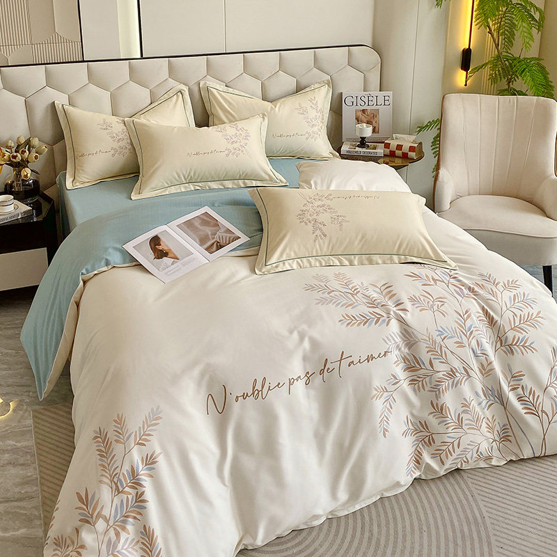 恒源祥绣花四件套60支纯棉全棉亲肤裸睡顺滑双人床上用品刺绣简约