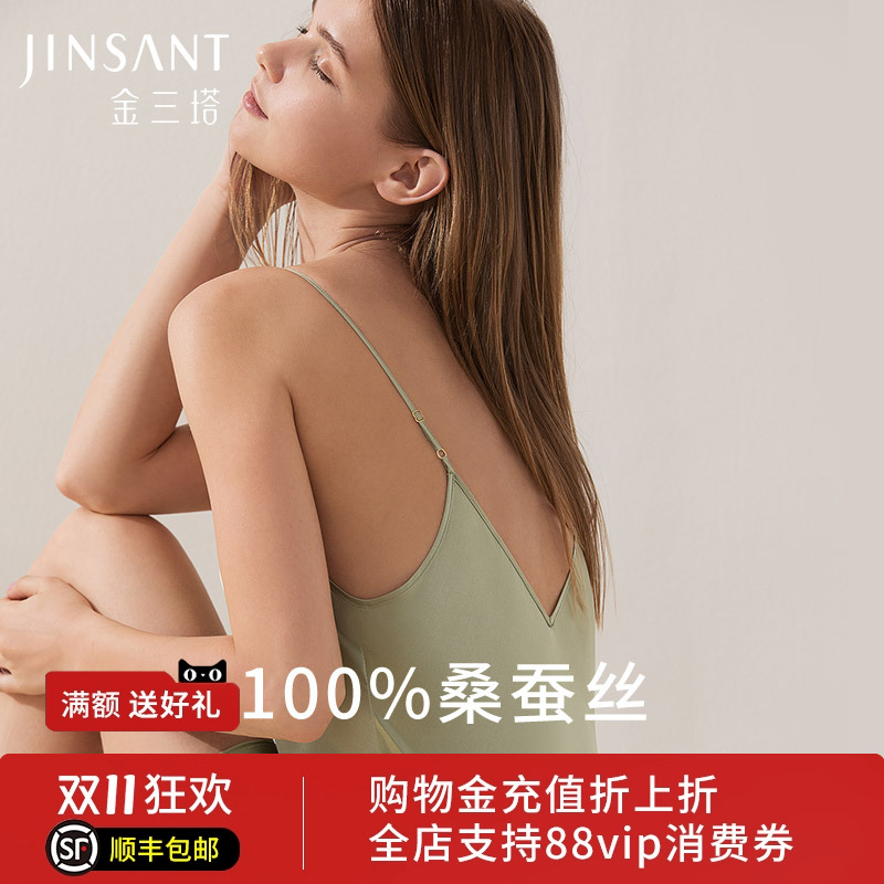 礼物】金三塔真丝吊带睡衣女100%桑蚕丝舒适显瘦性感丝绸睡裙