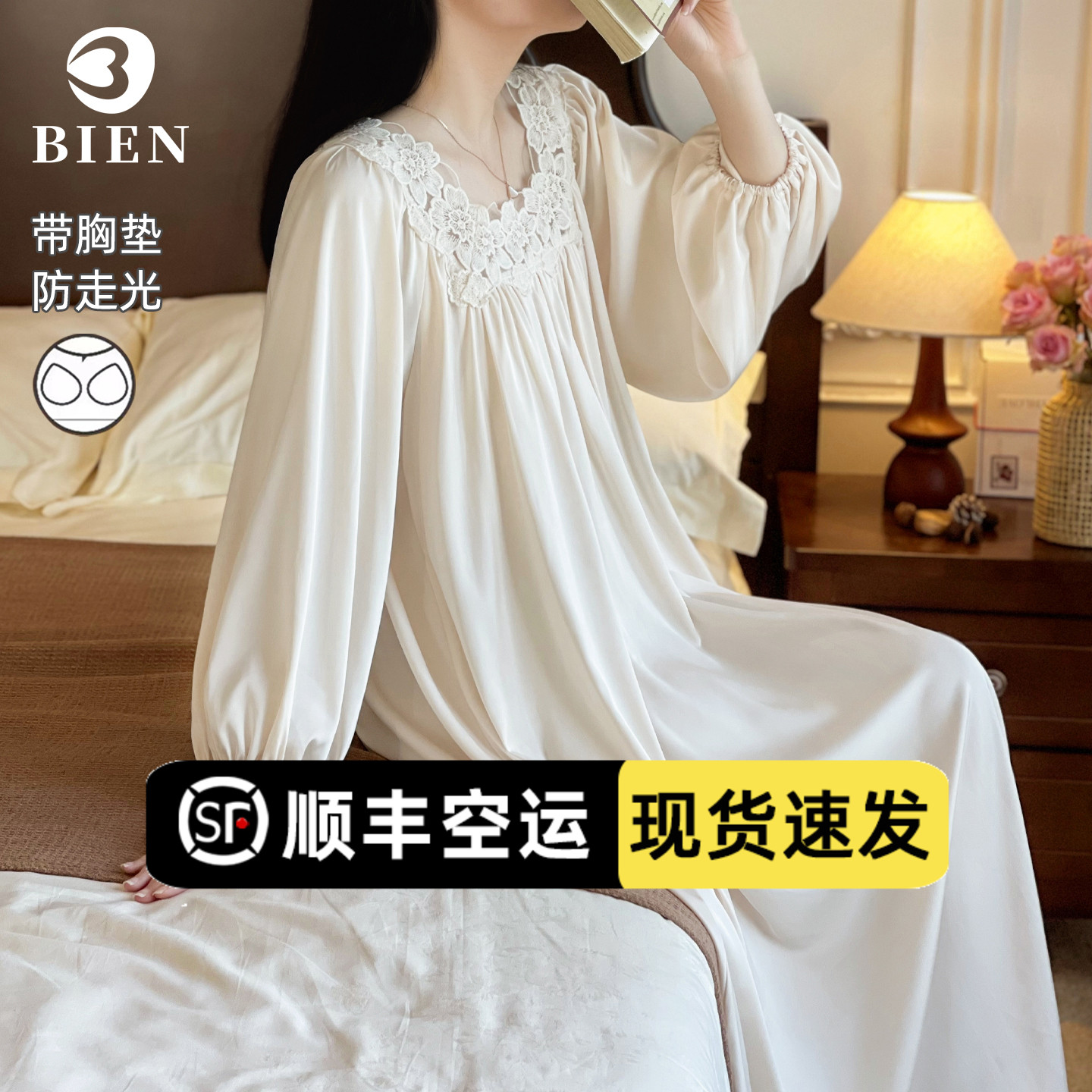 BIEN带胸垫冰丝绸睡裙女夏季新款甜美法式公主风家居服春秋高级感