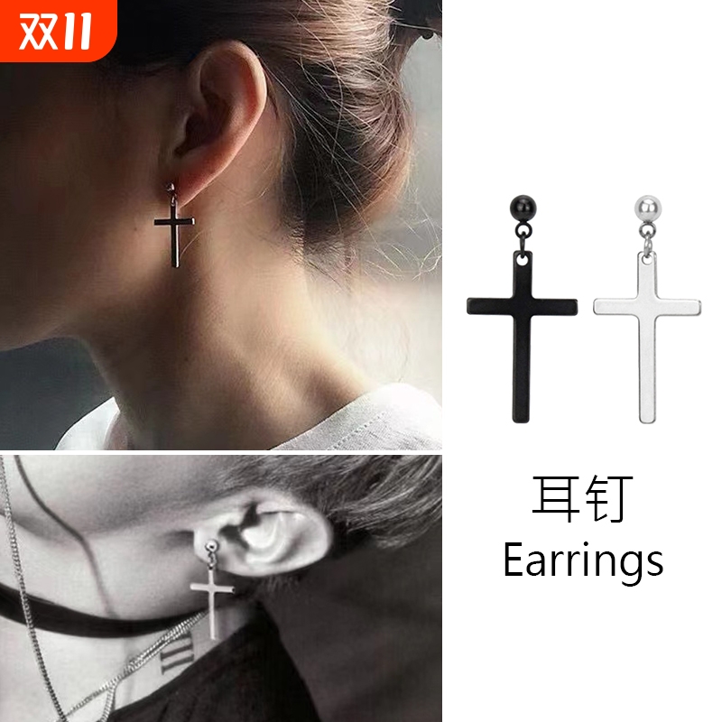 耳钉十字架创意霸气网红非主流耳饰百搭男女学生钛钢简约潮流饰品