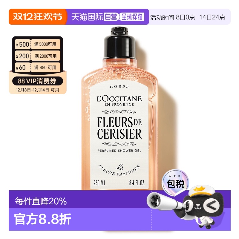 欧洲直邮L'OCCITANE欧舒丹甜蜜樱花香/白薰衣草沐浴露250ml正品