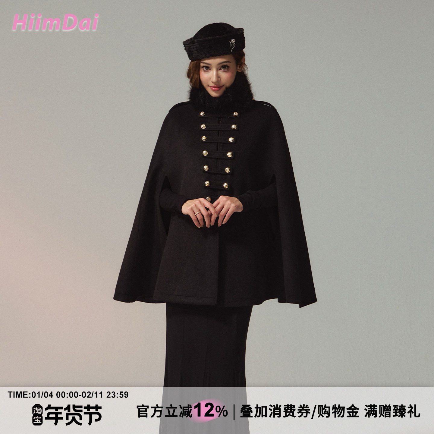 HiimDai 日系千金 NewMoney新贵层次双排扣立领简章毛呢斗篷大衣