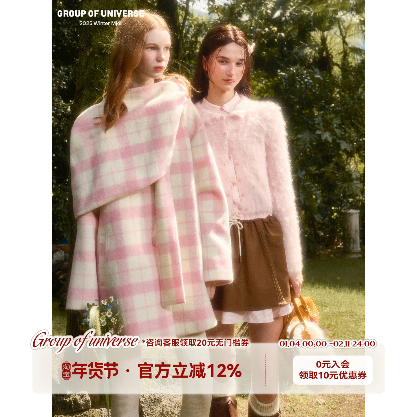 银河万岁“婴儿粉”覆盆子浆果格纹甜美千金风高级感「毛呢斗篷」