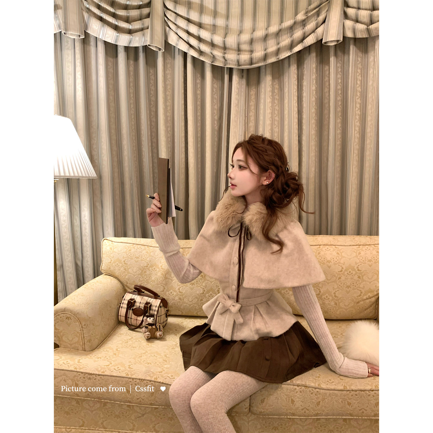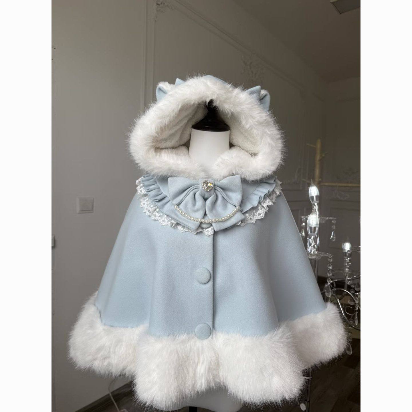 甜水仙 雪国纱绘子 斗篷大衣 羊毛毛呢外套 毛领毛袖斗篷外套