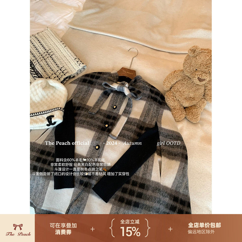 thepeachofficial【小樽情书】法式千金风羊毛呢斗篷大衣外套女冬