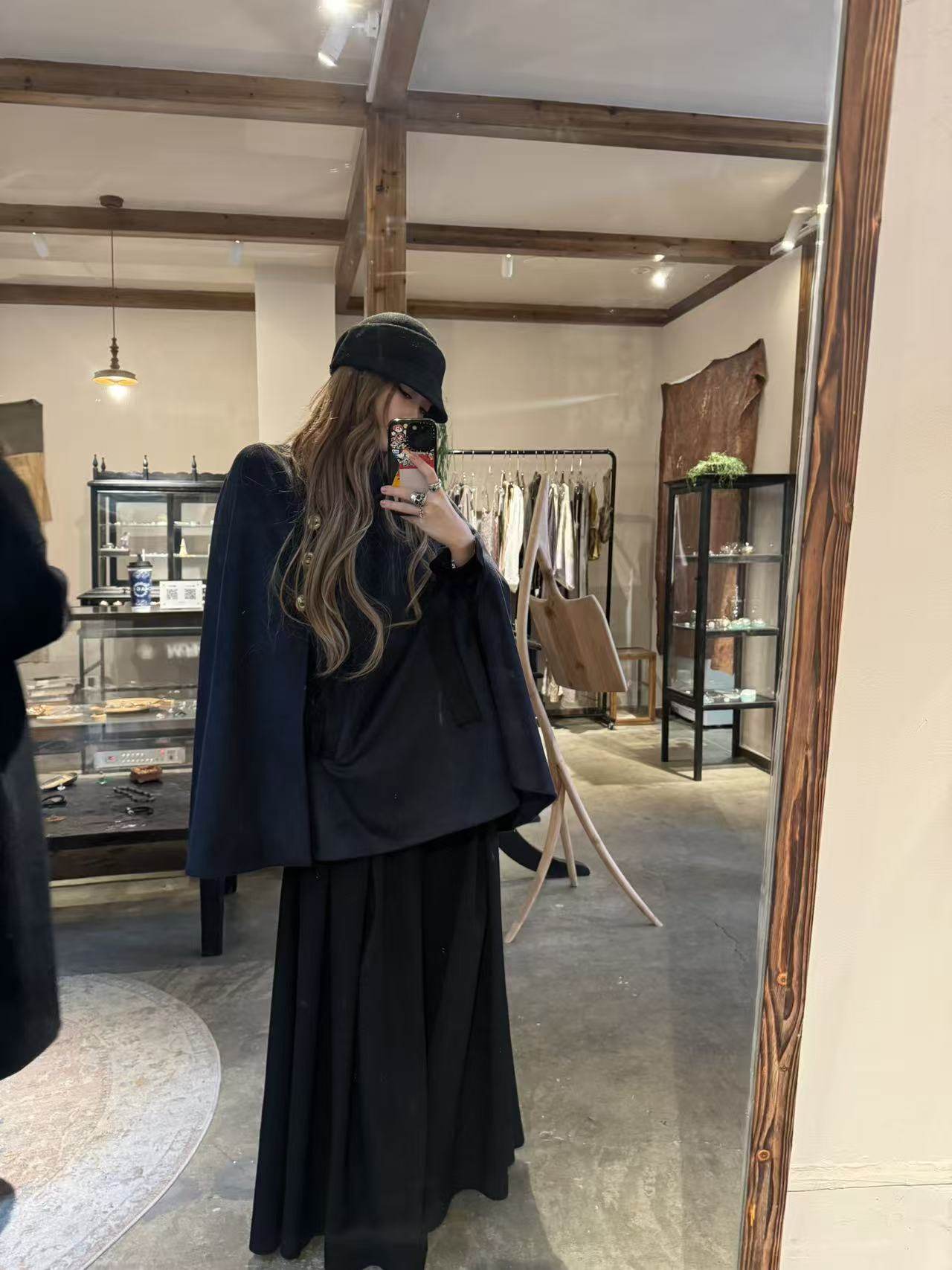 千金风黑色毛呢斗篷大衣女秋冬高级感小个子中长款呢子外套赫本风