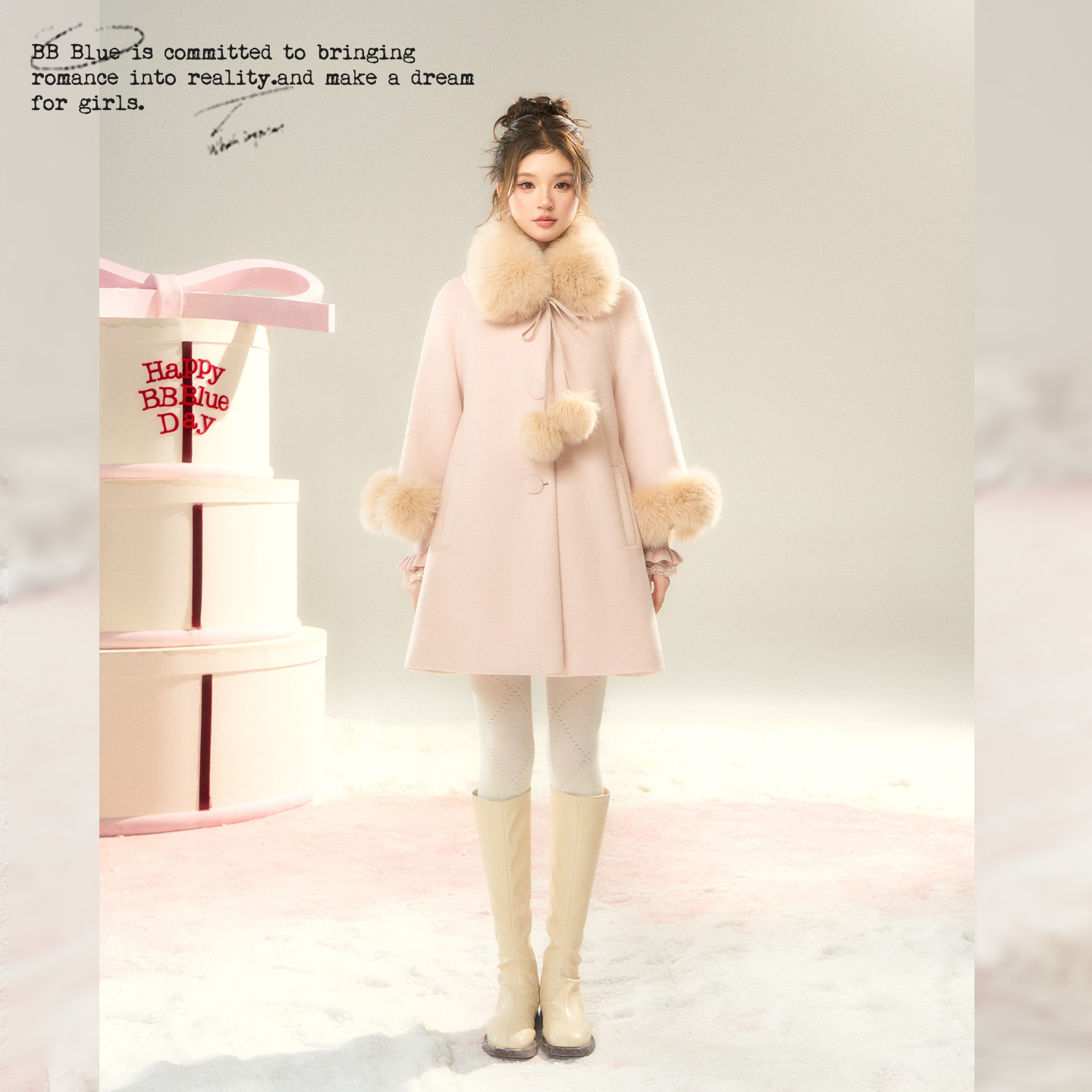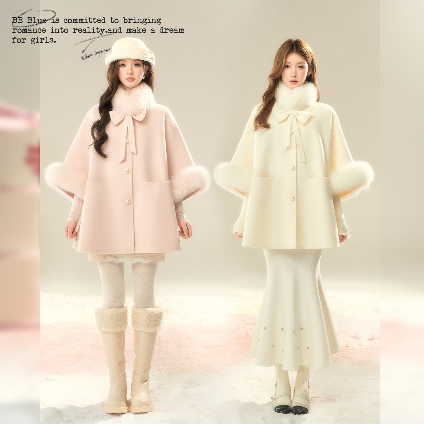 BBBLUE/冬日礼遇/2025年冬款100%羊毛呢斗篷外套甜美千金感大衣女
