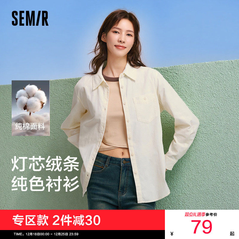 [商场同款]森马长袖衬衫女中长款宽松纯棉2025新款冬季灯芯绒上衣
