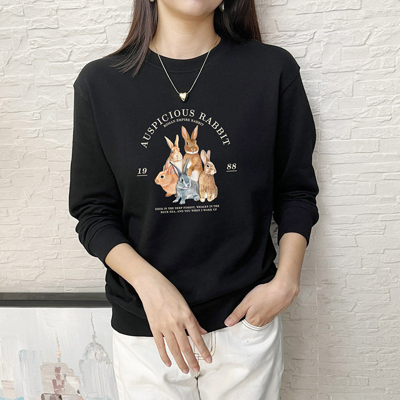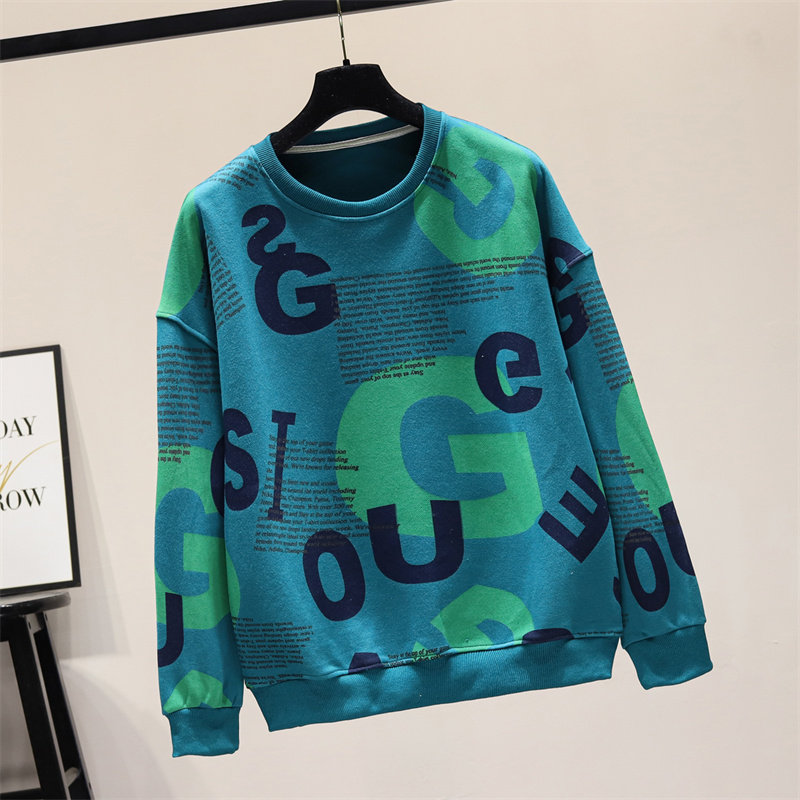 韩版春秋薄款卫衣长袖字母T恤宽松印花外套圆领女士套头上衣无帽
