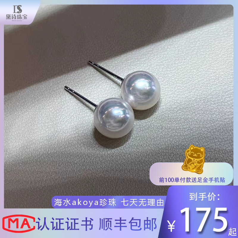 正品日本akoya海水珍珠耳钉18K金耳针正圆极光轻奢耳环证书礼物
