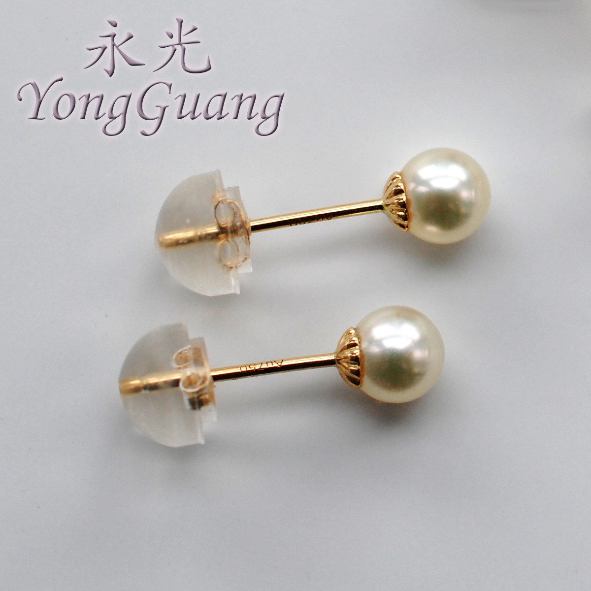 极光天女akoya日本海水珍珠耳环耳扣18K金加厚耳钉耳饰正圆镜面光