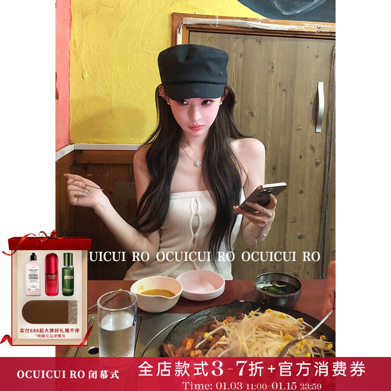 CUICUI崔崔【尘光游弋】"纯欲韩女"名媛风羊毛抹胸上衣半身裙套装