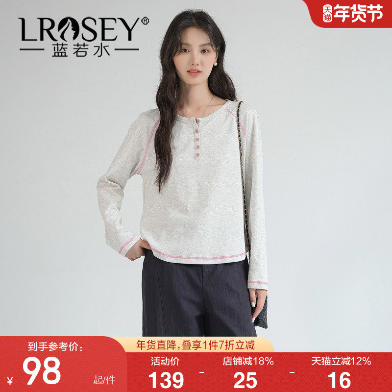 蓝若水大码女装简约明线针织打底衫2026春装新款基础款百搭上衣